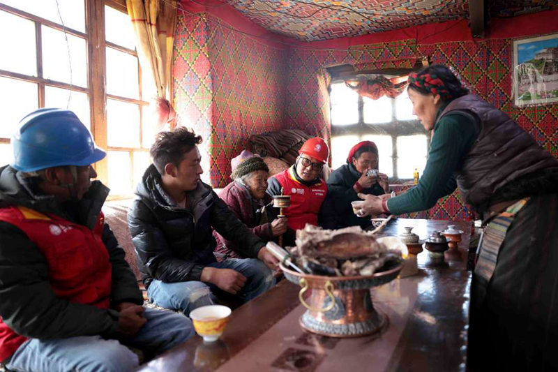 國(guó)網(wǎng)墨竹工卡縣供電公司員工與讓桌家人一起談?wù)撝iZ昱翰攝