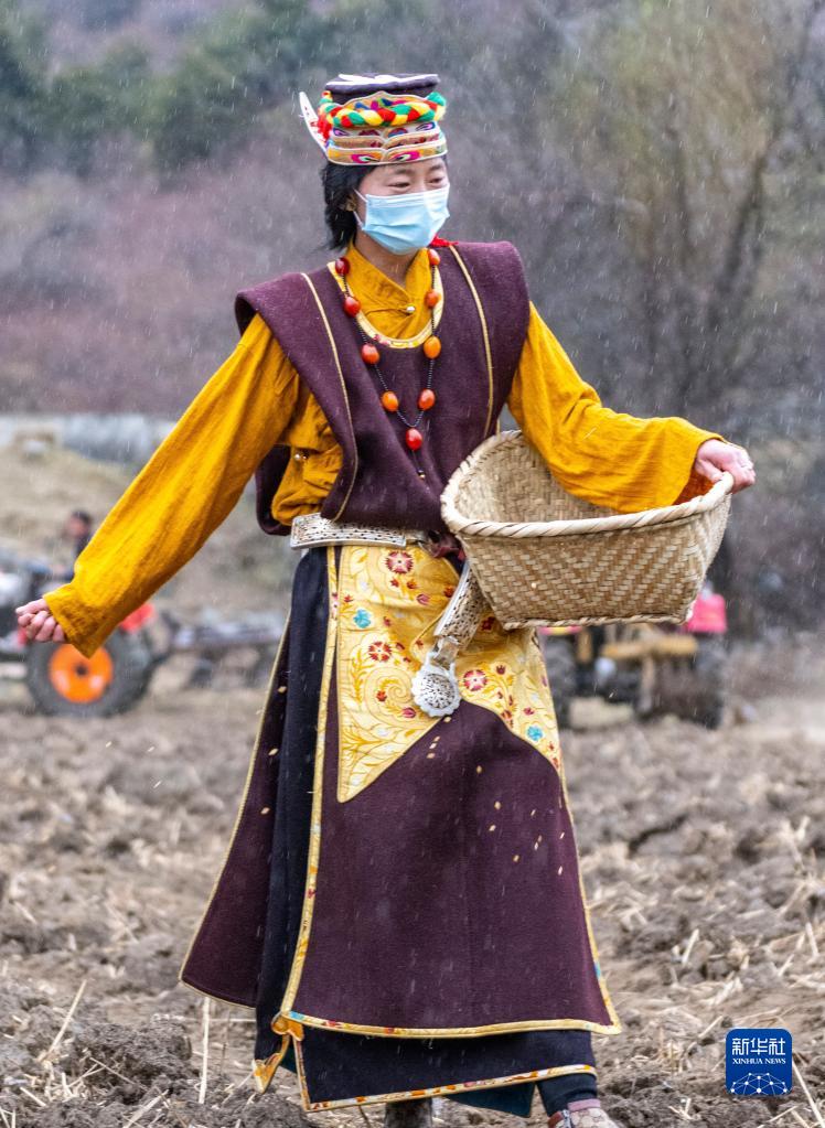 當(dāng)日,地處藏北大山深處的西藏那曲市嘉黎縣尼屋鄉(xiāng)舉行春耕儀式。