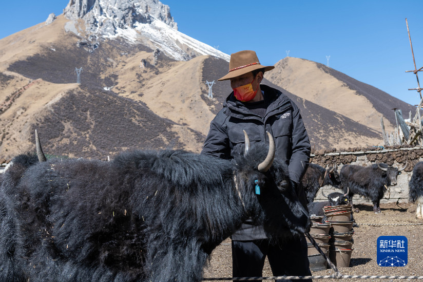 貢培在西藏娘亞牦牛養(yǎng)殖產(chǎn)業(yè)發(fā)展有限責(zé)任公司的標準化養(yǎng)殖場上工作(3月30日攝)。新華社記者 周荻瀟 攝