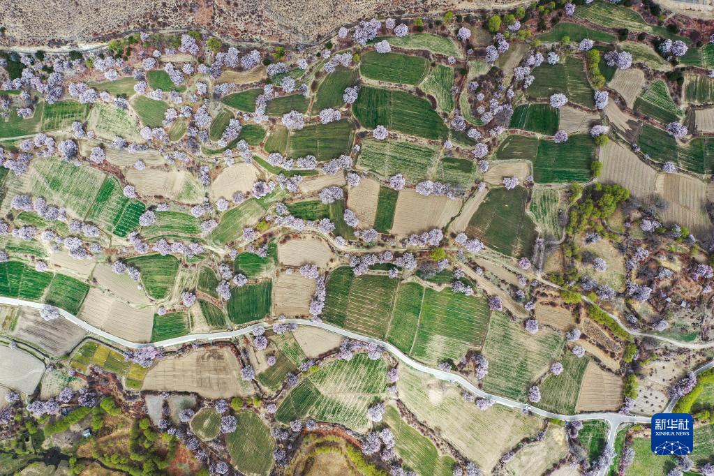 西藏林芝市巴宜區(qū)布久鄉(xiāng)朵當村桃花園(3月28日攝,無人機照片)。新華社記者 洛卓嘉措 攝