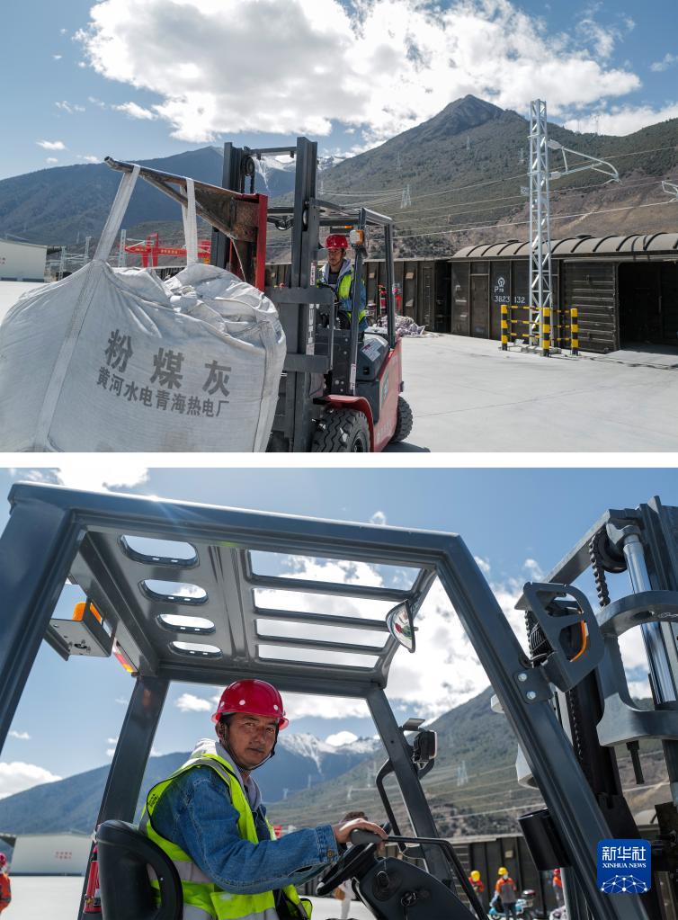 拼版照片:上圖為3月29日,邊巴在林芝站貨場搬運貨物;下圖為邊巴在駕駛叉車。朵當村的村民邊巴跟人合伙開了一家物流公司,將抵達火車站的飼料、日用百貨、建筑材料等運往林芝各地,他每天都會通過微信召集周邊的年輕人來貨場干活。邊巴說,他對未來充滿希望,拉林鐵路貨運量不斷增加,自己和村民的收入會越來越好。新華社記者 洛卓嘉措 攝