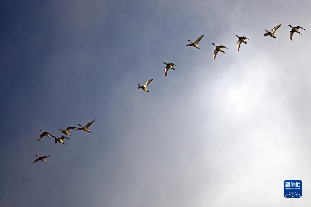 這是4月10日在西藏阿里日土縣拍攝的一群斑頭雁。新華社記者 姜帆 攝
