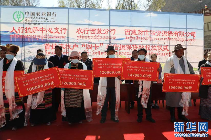 26日,由西藏財信融資擔(dān)保有限公司與農(nóng)行西藏分行聯(lián)合推出的農(nóng)牧戶“四卡”增信擔(dān)保貸款首批發(fā)放儀式,在山南市洛扎縣洛扎鎮(zhèn)舉行?,F(xiàn)場9名受益群眾代表獲“四卡”增信擔(dān)保貸款共計111萬元。