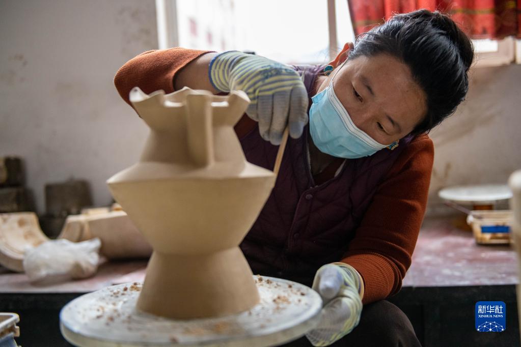 這是在昌都市察雅縣的產業(yè)車間加工完成的器皿(4月8日攝)。新華社記者 周荻瀟 攝