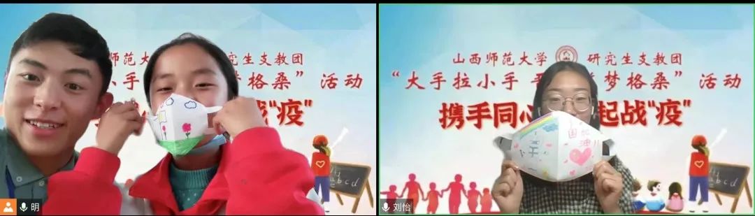 連線中,孩子們主動(dòng)關(guān)心我校志愿者的在校情況,孩子們充滿關(guān)切的眼神讓志愿者們紛紛動(dòng)容。志愿者們也向孩子們詳細(xì)的介紹了防疫自護(hù)知識,結(jié)合視頻、圖片等形式生動(dòng)講述了團(tuán)結(jié)一心、眾志成城的抗疫故事,向所有抗疫英雄們致敬,同時(shí)引導(dǎo)孩子們要深刻認(rèn)識到作為一名中國人的幸福,勉勵(lì)孩子們永遠(yuǎn)要團(tuán)結(jié)在一起,共克時(shí)艱,遠(yuǎn)在西藏也要做好防護(hù),一字一句中滿是擔(dān)心和牽掛。隨后,孩子們拿出早已準(zhǔn)備好的工具與志愿者們一同制作了口罩,口罩上寫滿了對哥哥姐姐的關(guān)心、祝福,天真可愛的臉龐上寫滿了戰(zhàn)勝疫情的決心。連線最后,孩子們將精心準(zhǔn)備的才藝表演給志愿者們,是鏗鏘有力的《少年中國說》,是活潑動(dòng)人的《給你一個(gè)擁抱》,是真誠溫暖的《聽我說謝謝你》,或許是那不太流暢的表達(dá)、不太連貫的動(dòng)作,讓遠(yuǎn)隔3700公里的傳遞更加有了溫度,讓兩顆互相牽掛的心靠的更近。