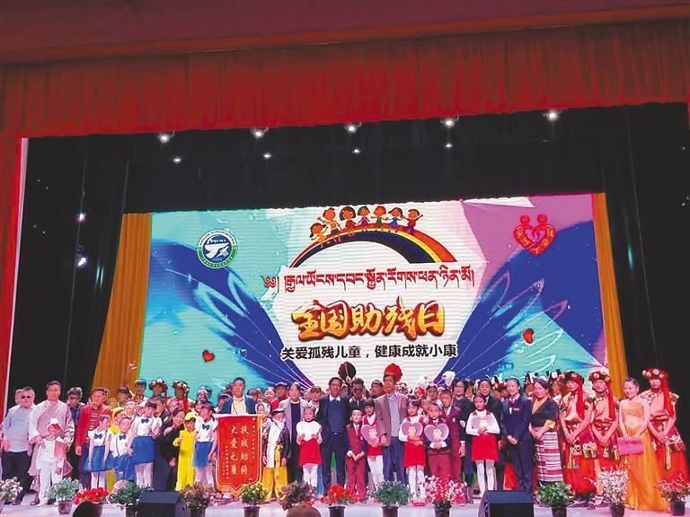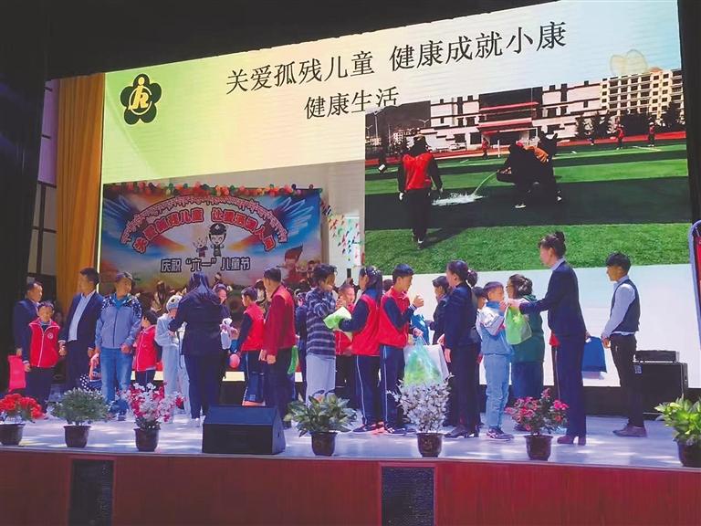 圖為在全國助殘日,全校師生開展“關(guān)愛孤殘兒童,健康成就小康”活動。