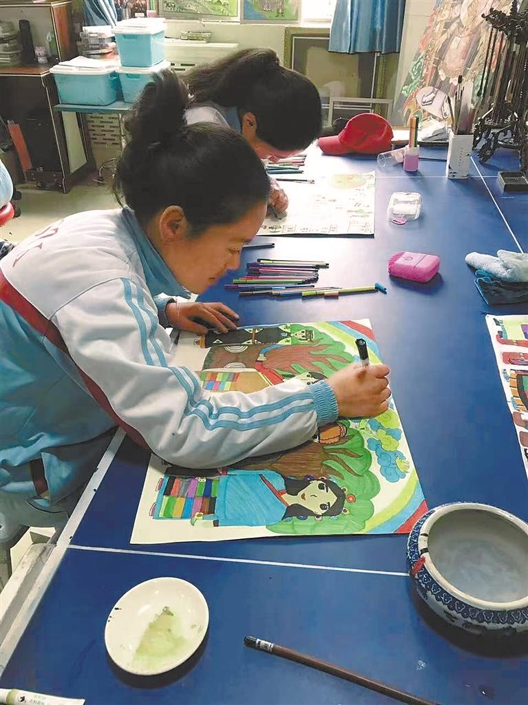 圖為學(xué)生們在上美術(shù)課。
