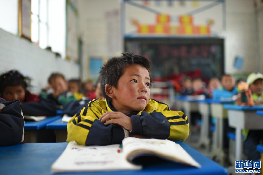 多油村中心小學(xué)的學(xué)生在聽課(4月21日攝)。新華網(wǎng) 旦增努布攝