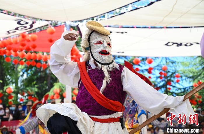 圖為2021年6月,西藏民間藏戲隊在宗角祿康公園表演。趙朗 攝