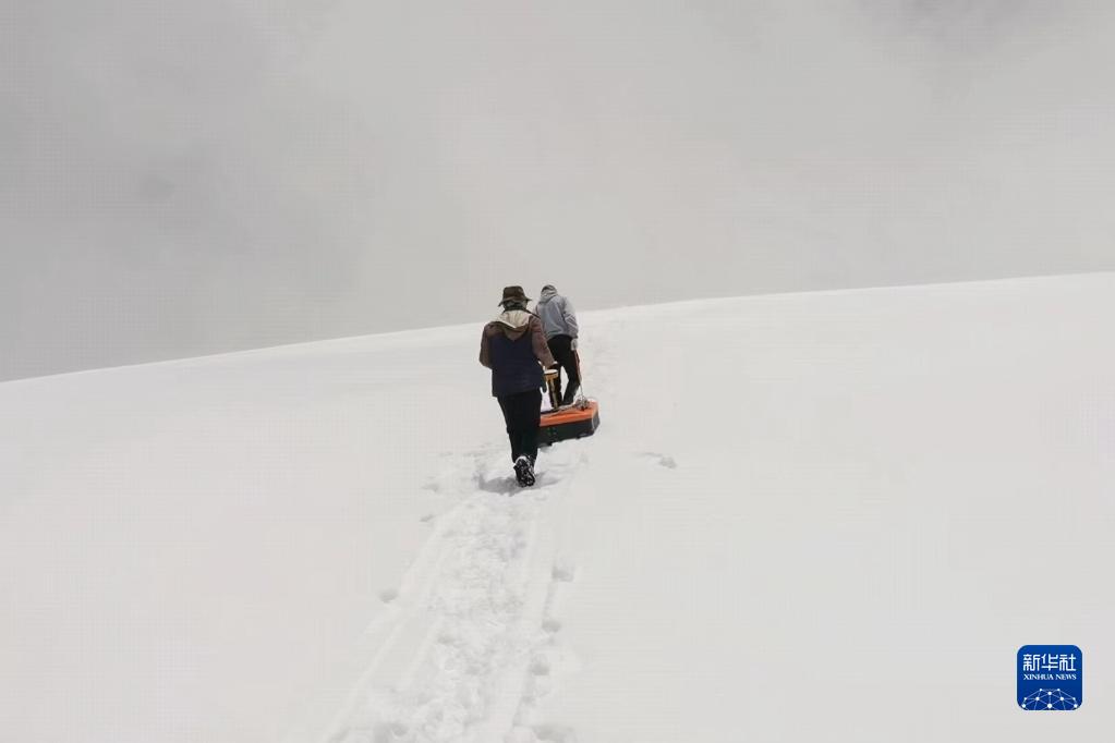 科考人員拉著冰川雷達(dá)測厚儀開展測量工作。(受訪者供圖)