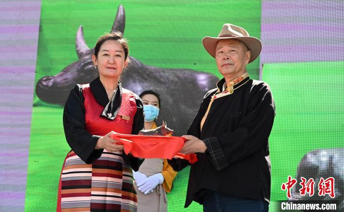 西藏牦牛博物館創(chuàng)館館長(zhǎng)、現(xiàn)榮譽(yù)館長(zhǎng)吳雨初向西藏牦牛博物館捐贈(zèng)了玉石牦牛雕刻作品。
