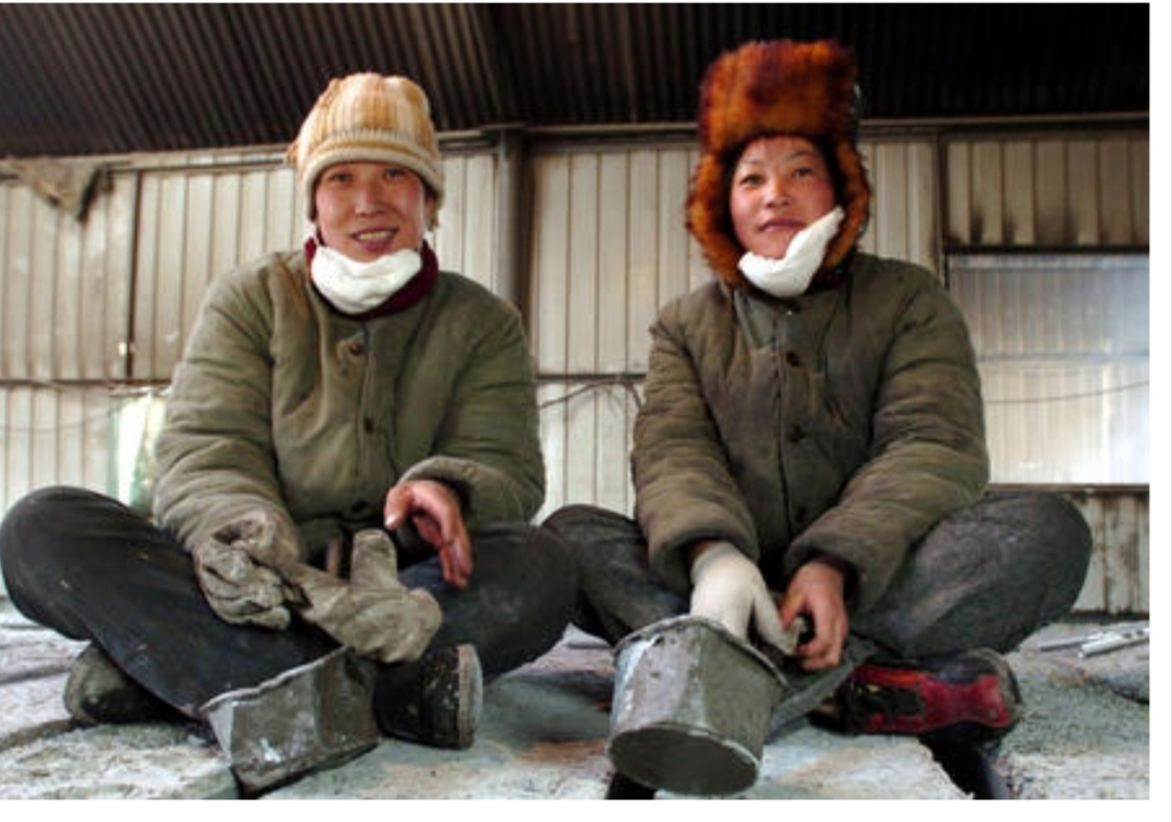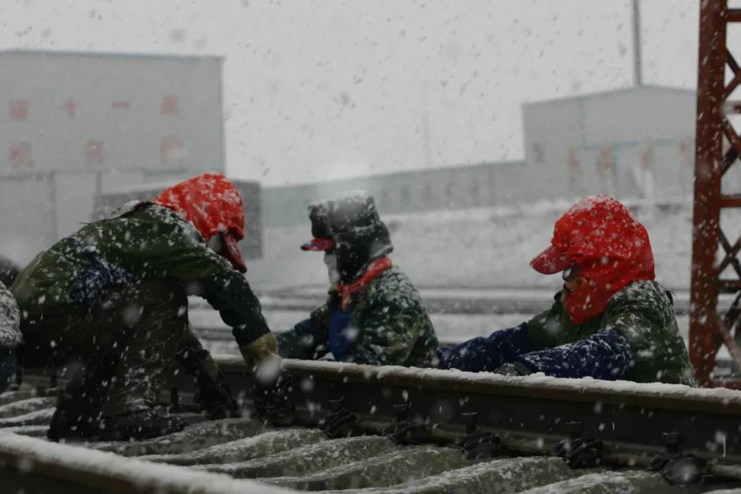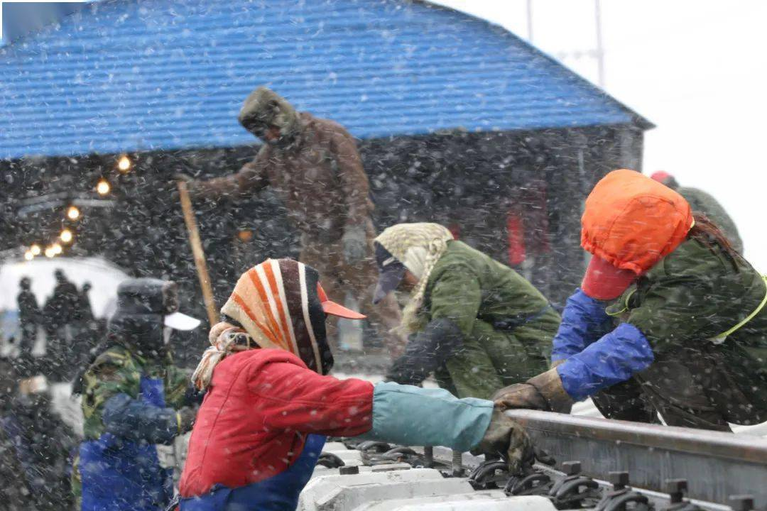姑娘們頂風冒雪生產(chǎn)軌排。