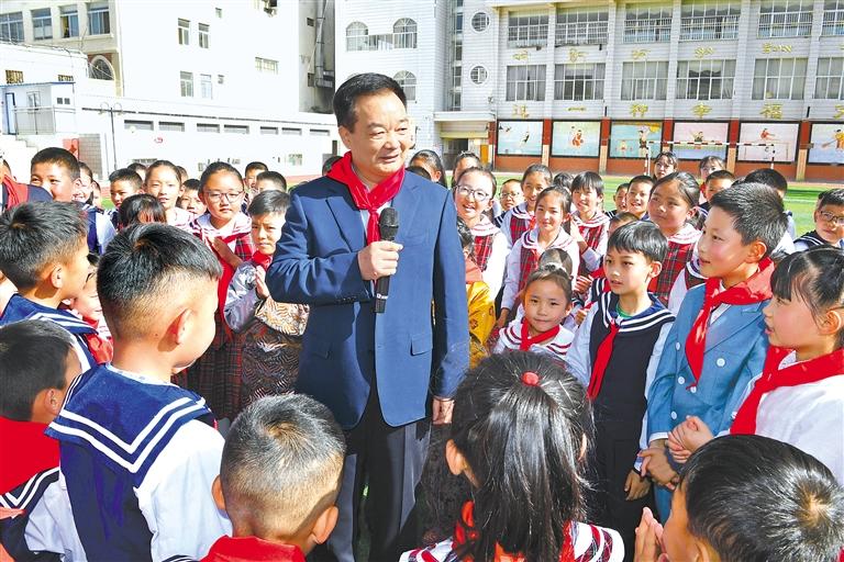 “六一”國際兒童節(jié)來臨之際,西藏自治區(qū)黨委書記王君正5月31日上午來到拉薩市第一小學參加“六一”國際兒童節(jié)“喜迎二十大、爭做好隊員”主題隊日活動,代表自治區(qū)黨委、政府向全區(qū)少年兒童致以節(jié)日的祝福,向廣大教師表示親切的慰問,希望廣大少年兒童傳承紅色基因,爭做紅色少年,努力做合格的社會主義建設者和接班人。