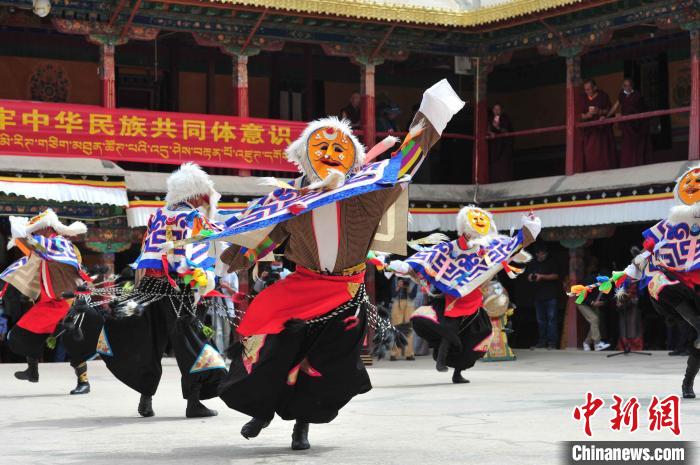 圖為西藏藏劇團演員表演非遺嘎爾。貢嘎來松 攝