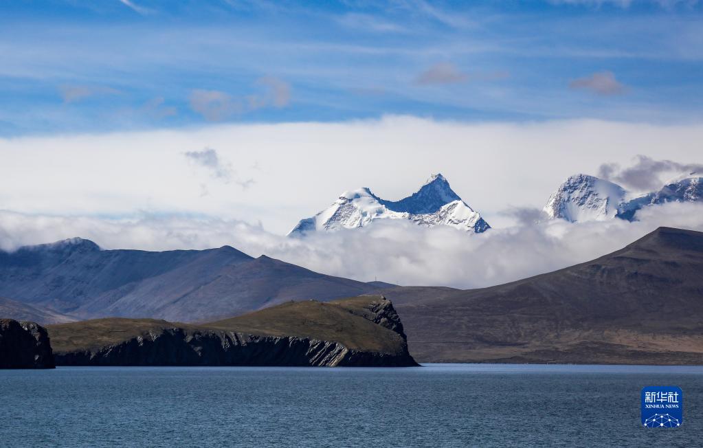這是5月1日在西藏山南市從白瑪林錯(cuò)方向拍攝的庫(kù)拉崗日冰川(手機(jī)照片)。新華社記者 沈虹冰 攝