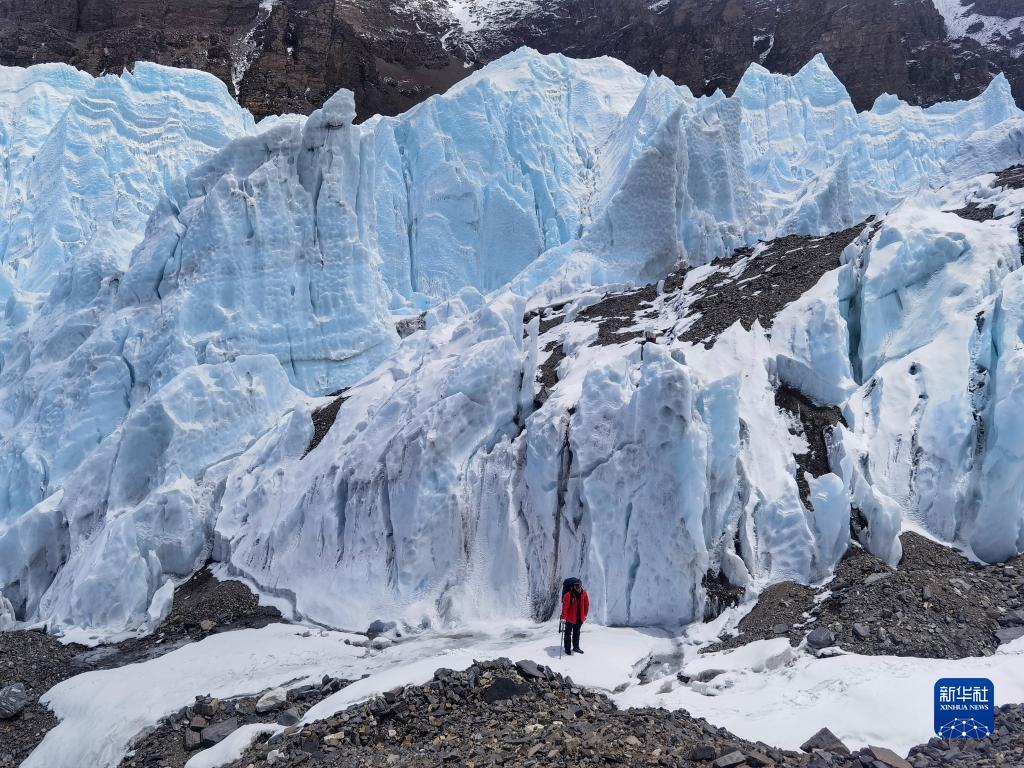 這是5月6日在西藏日喀則市拍攝的珠穆朗瑪峰腳下的絨布冰川冰塔林(手機(jī)照片)。新華社發(fā)(康世昌 攝)