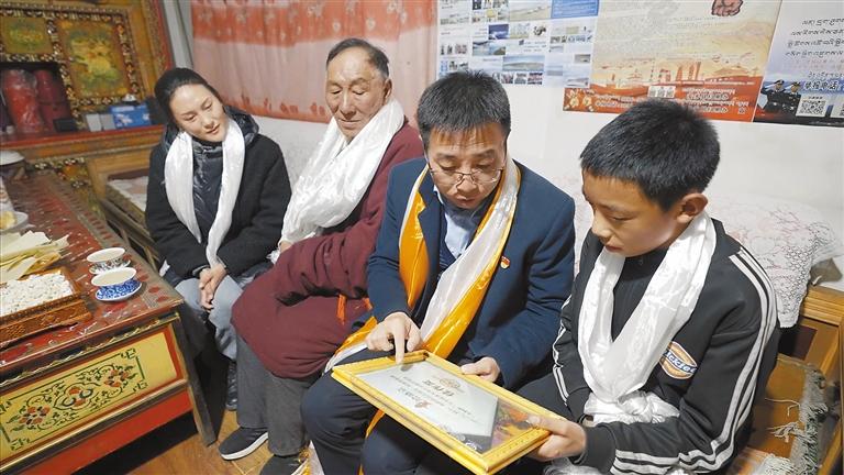 沈陽市第九批援藏工作組副領(lǐng)隊、安多縣常務(wù)副縣長裴德本來到資助的貧困中學(xué)生古扎多吉家中家訪。