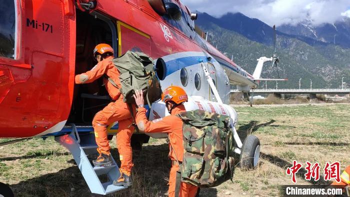 圖為消防救援人員準備進行攜裝機降。西藏森林消防總隊林芝支隊 供圖