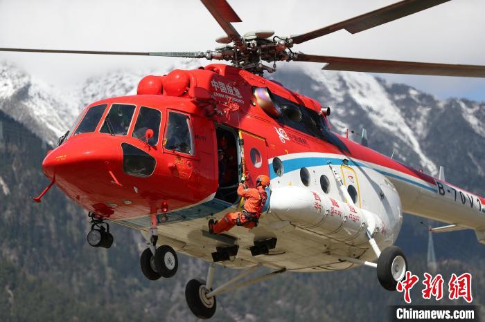 圖為消防救援人員正在進行直升機索降訓練。西藏森林消防總隊林芝支隊 供圖