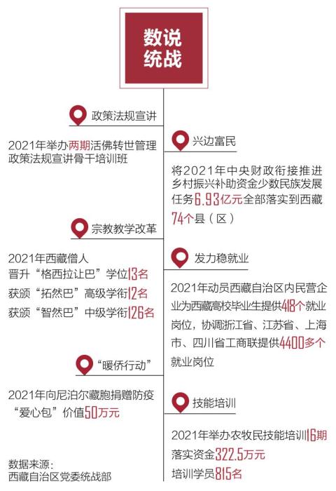 2021年,西藏統(tǒng)戰(zhàn)系統(tǒng)廣泛宣傳活佛轉(zhuǎn)世政策法規(guī),深入開展反分裂斗爭(zhēng),牢牢掌握反分裂斗爭(zhēng)全局主動(dòng)性,統(tǒng)戰(zhàn)民族宗教領(lǐng)域保持了持續(xù)和諧穩(wěn)定。