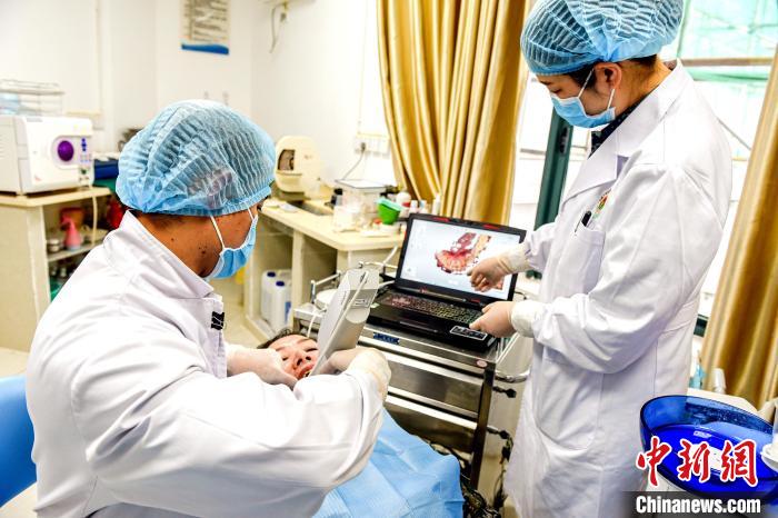 圖為醫(yī)生正在對(duì)患者進(jìn)行口內(nèi)掃描采集數(shù)據(jù)。彭毅 攝