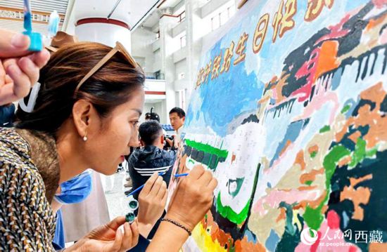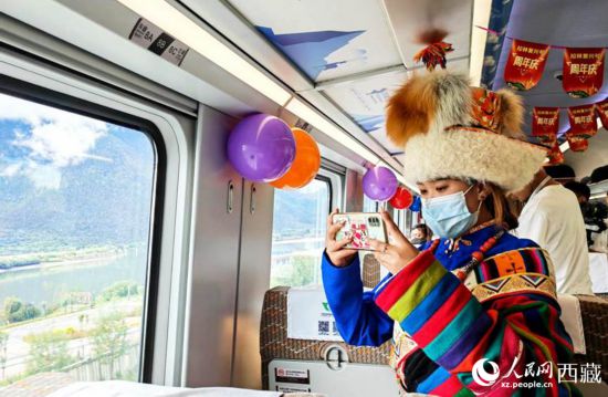 拉林鐵路開通一周年,旅客祝拉林鐵路生日快樂。人民網(wǎng) 李海霞攝