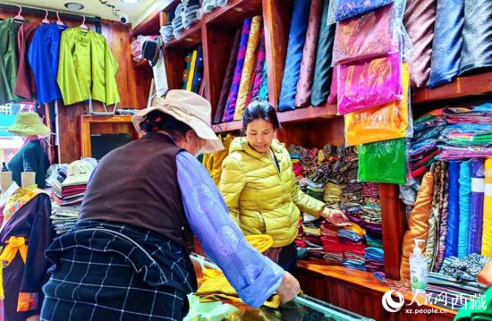 進入旅游旺季后,來自天南地北的游客到拉薩八廓古城賞民俗品文化,位于八廓街上的朵究倉藏裝店也因此成了必備網(wǎng)紅打卡店。“我在新聞里看到總書記來過你們店,所以專門過來的,想買一身藏裝作紀念,老板你幫我看看哪件合適?”來自東北的吳女士邊挑選衣服邊說。