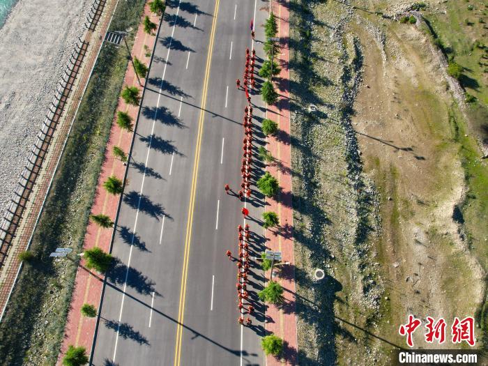 圖為拉練隊(duì)伍穿梭在公路間。 林芝市森林消防支隊(duì)供圖
