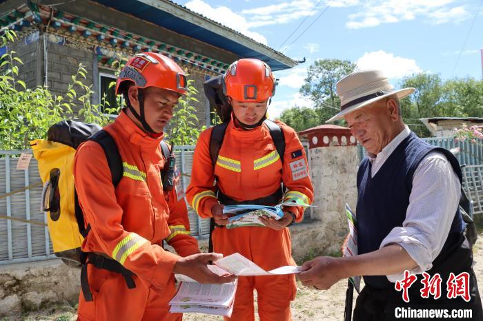 圖為拉練途中為駐地群眾普及防火知識(shí)。 林芝市森林消防支隊(duì)供圖