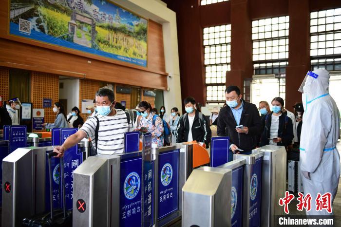 在拉薩火車站候車廳,記者觀察,旅客相較疫情前減少了很多。候車旅客中,有些是出藏游客,有些是返鄉(xiāng)的務工人員。除了拉薩往返日喀則的列車停運,其他列車正常運行。當日下午3點多,乘坐開往北京列車的旅客在工作人員和民警的引導下,陸續(xù)檢票進站。