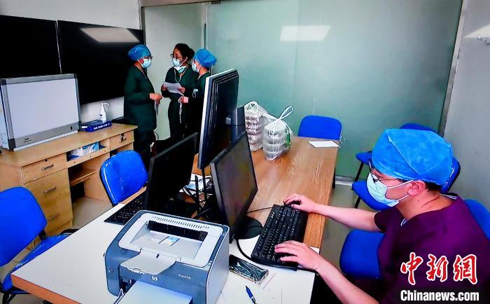 圖為監(jiān)控視頻中,西藏自治區(qū)第三人民醫(yī)院醫(yī)生在病房區(qū)辦公?!±盍?攝