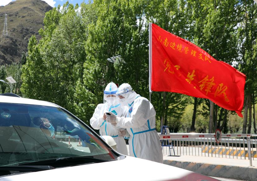 該支隊積極響應山南市委、市政府疫情防控需求,從機關層面著手,第一時間組建“黨員先鋒隊”。30余名青年移民管理警察主動請戰(zhàn),火速奔赴疫情防控最前線。在進出市區(qū)各交通要道執(zhí)勤現(xiàn)場,有序開展人員身份信息比對、核酸檢測報告查驗,車輛消殺等工作,全力確保人員、車輛、物資輸入輸出安全。
