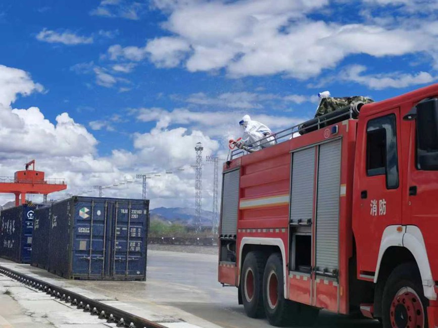 拉薩西站聯(lián)系堆龍德慶區(qū)乃瓊街道防疫部門組織堆龍消殺隊,對拉薩西站東門區(qū)域、中風(fēng)險區(qū)宏順裝卸宿舍樓內(nèi)及大門進行專業(yè)、全面、系統(tǒng)性消殺;日喀則站聯(lián)系市疫情防控部門消殺組,對林瑞達(dá)裝卸隊院內(nèi)、貨運職工、裝卸隊住宿樓進行;那曲站聯(lián)系市消防部門對車站、站臺、貨場等重要場所進行專業(yè)、全面、系統(tǒng)性消殺。
