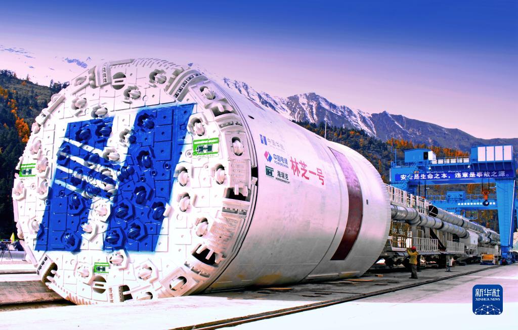 派墨公路多雄拉隧道施工采用的“林芝一號”全斷面雙護盾硬巖掘進機(TBM)完成組裝并順利進行首次滑行(2015年10月29日攝)。新華社發(fā)(董志雄 攝)