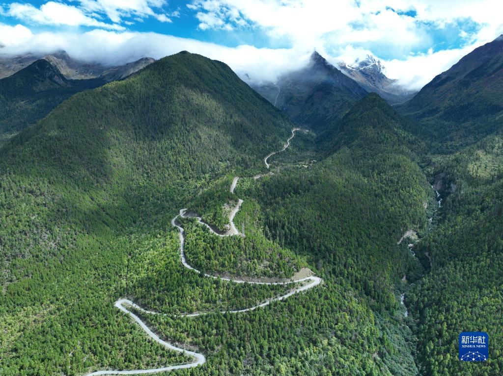 這是2022年9月30日拍攝的派墨公路派鎮(zhèn)起點路段(無人機照片)。新華社發(fā)(董志雄 攝)