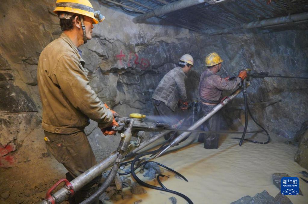工人在派墨公路老虎嘴隧道掌子面打鉆作業(yè)(2021年2月9日攝)。新華社發(fā)(董志雄 攝)