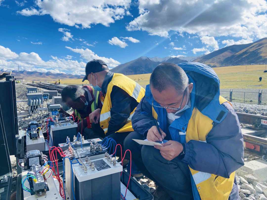 “大家?guī)Ш霉ぞ卟牧希灰羞z漏,各作業(yè)小組都要負(fù)起責(zé)任,爭(zhēng)取做到一遍驗(yàn)收通過(guò)。”現(xiàn)場(chǎng)施工負(fù)責(zé)人拉薩基礎(chǔ)設(shè)施段副段長(zhǎng)馬會(huì)軍大聲叮囑道。10月3日9時(shí)30分,青藏鐵路古露站站臺(tái)上,拉薩基礎(chǔ)設(shè)施段電務(wù)維修技術(shù)中心的16名驗(yàn)收人員整裝待發(fā),他們將利用480分鐘“天窗”作業(yè)時(shí)間對(duì)古露站道岔、軌道電路、信號(hào)機(jī)、計(jì)軸等信號(hào)設(shè)備進(jìn)行驗(yàn)收作業(yè)。
