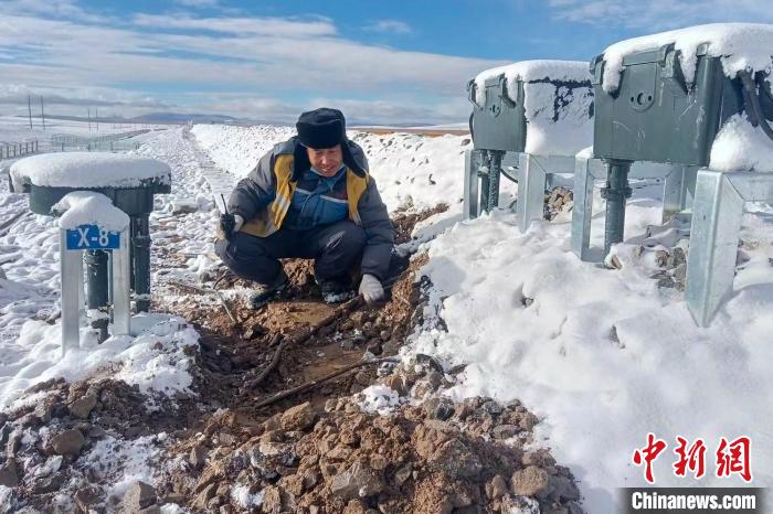 在唐古拉山地區(qū),空氣中的含氧量不足平原地區(qū)的50%,一個(gè)看似簡(jiǎn)單而又行云流水的檢查作業(yè),一套下來(lái),工作人員們氣喘吁吁?!敖裉焯乒爬奶鞖膺€不錯(cuò),風(fēng)也不大。”帽檐上、眉毛上結(jié)滿了霜花的梁海峰一邊檢查一邊說(shuō)。