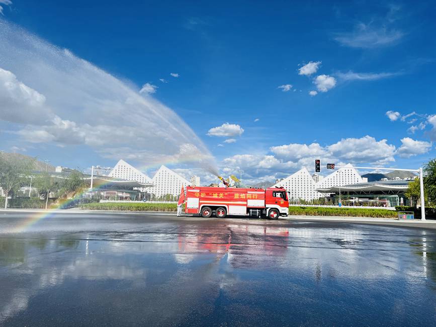 2022年8月13日,一條《彩虹下的心愿,愿疫情早日退去》的視頻刷爆拉薩市民的朋友圈,視頻中消防指戰(zhàn)員化身“大白”,逆行而上,在拉薩主城區(qū)以社區(qū)網(wǎng)格為基本單位開(kāi)展消殺。當(dāng)天,消防車(chē)30輛、指戰(zhàn)員146人集體出動(dòng),噴灑而出的消毒液在陽(yáng)光下形成了一道道彩虹。