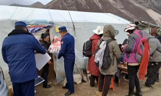 圖為山南市消防救援支隊(duì)在蟲(chóng)草采集點(diǎn)開(kāi)展消防宣傳。