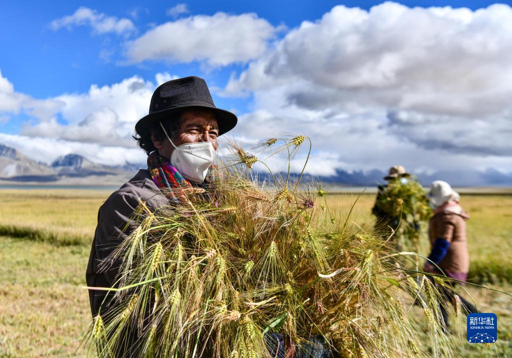 西藏拉薩市林周縣邊林鄉(xiāng)當杰村玉沖組村民在收割小麥(2022年9月6日攝)。新華社記者 姜帆 攝