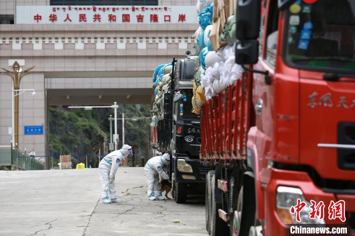 吉隆出入境邊防檢查站移民管理警察對(duì)外出口岸限定區(qū)域車輛進(jìn)行消毒?!⌒じ毁F 攝