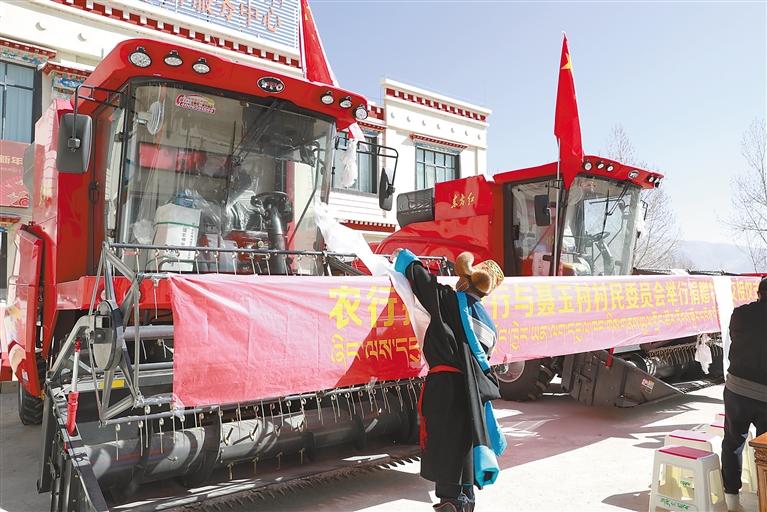 農行拉薩分行向該行駐村點尼木縣聶玉村捐贈大型收割機。