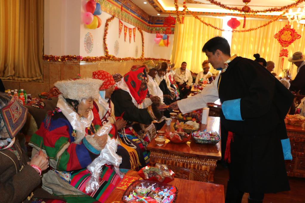 阿里地區(qū)特困人員集中供養(yǎng)服務(wù)中心的老人們在歡度藏歷新年。(2022年3月2日攝,新華社發(fā))