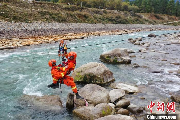 繩索渡河救援訓(xùn)練現(xiàn)場?!√剖啦?攝