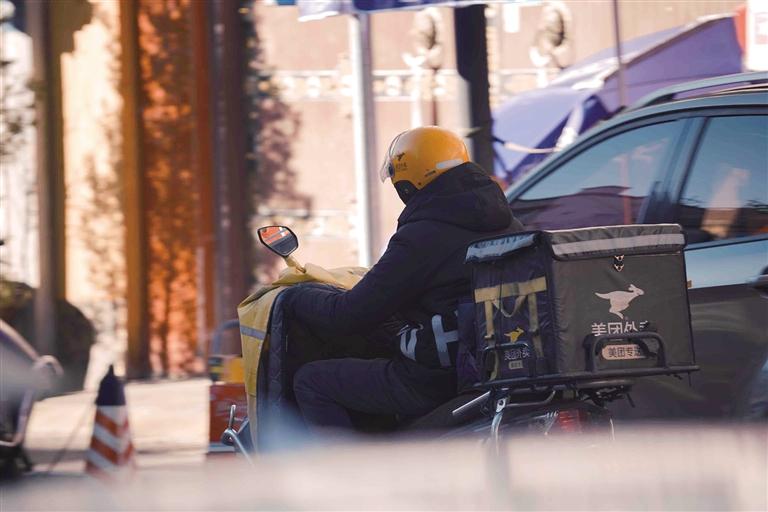 正在送餐的外賣騎手。記者 阿旺尼瑪 攝