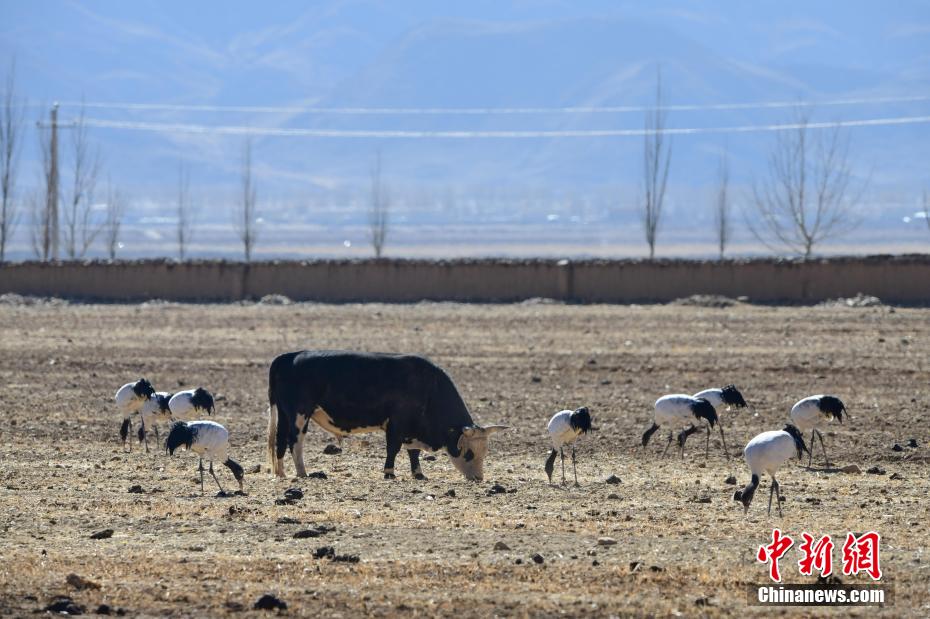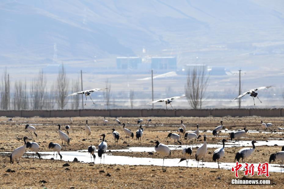 每年的10月底,成群的黑頸鶴飛到西藏拉薩市林周縣越冬,在拉薩市林周縣周邊的湖泊濕地度過5個(gè)月的“閑云野鶴”生活,次年三四月份再飛向藏北草原繁殖。黑頸鶴是世界上唯一一種高原鶴類。具有足長、喙長、頸長的典型涉禽類特征,適合在沼澤地里行走。黑頸鶴的頸、尾為黑色,體羽為灰白色。黑頸鶴是國家一級保護(hù)動物。目前,每年到林周縣越冬的黑頸鶴已達(dá)2000只左右。圖為黑頸鶴在林周境內(nèi)的農(nóng)田里覓食。 貢嘎來松 攝