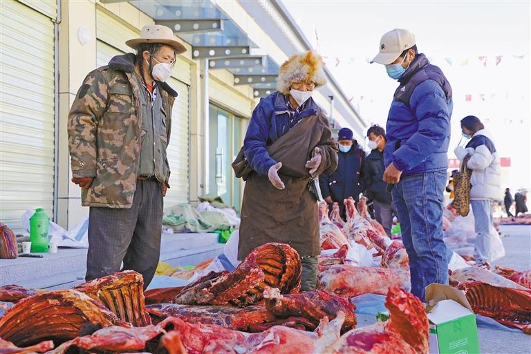 當?shù)厝罕娺x購牛羊肉。記者 永青 攝