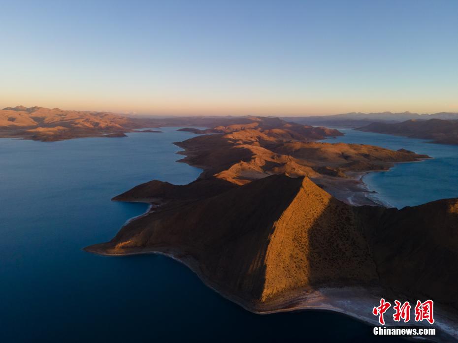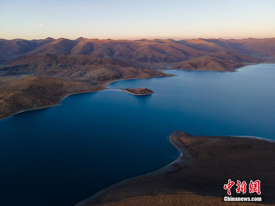 近日,西藏自治區(qū)山南市羊卓雍錯(cuò)(簡(jiǎn)稱羊湖),冬日由于沒(méi)有云層遮擋,湖水更顯深藍(lán)、孔雀藍(lán)。航拍視角下,湖水像巨大的寶石鑲嵌于高原大地,風(fēng)光壯麗。羊卓雍錯(cuò)藏語(yǔ)意為“碧玉湖”,湖面海拔4441米,與納木錯(cuò)、瑪旁雍錯(cuò)并稱西藏三大“圣湖”。圖為日落后的羊卓雍錯(cuò)風(fēng)光。 江飛波 攝