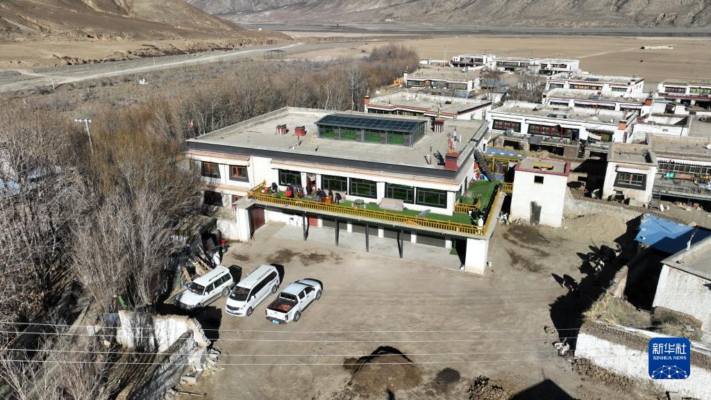 西藏日喀則市拉孜縣扎西宗鄉(xiāng)雜村次旦老人家的二層小樓(1月22日攝,無人機(jī)照片)。新華社記者 晉美多吉 攝